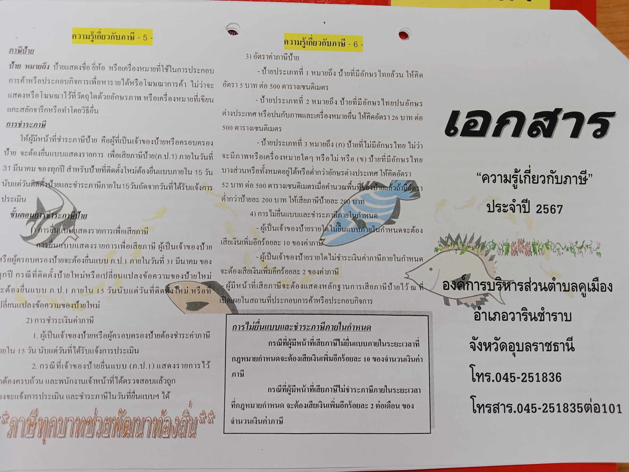 ประชาสัมพันธ์ เกี่ยวกับการจัดเก็บภาษี ประจำปี 2567