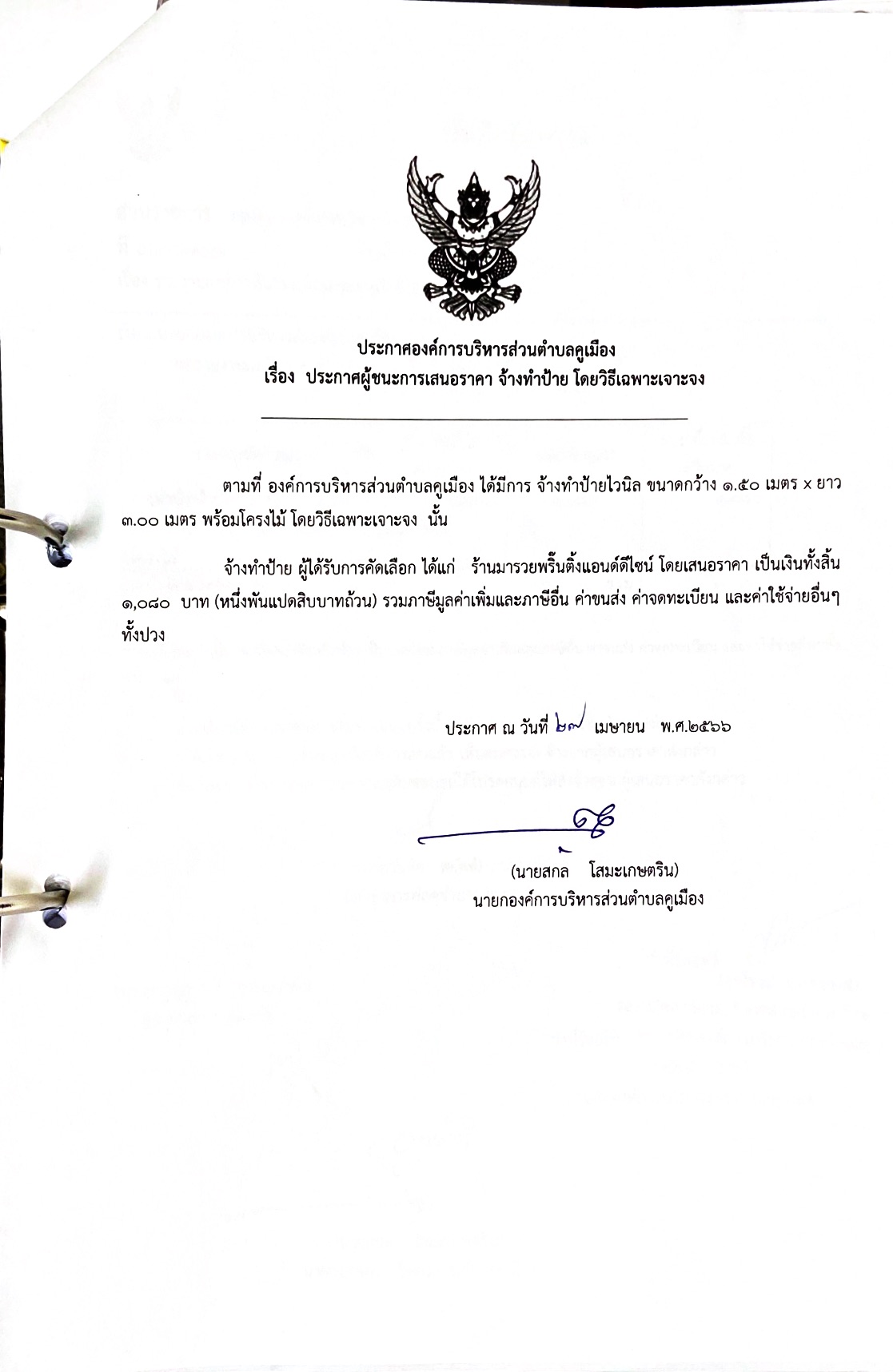- ประกาศผู้ชนะการเสนอราคา จ้างทำป้าย โดยวิธีเฉพาะเจาะจง (175 Downloads)